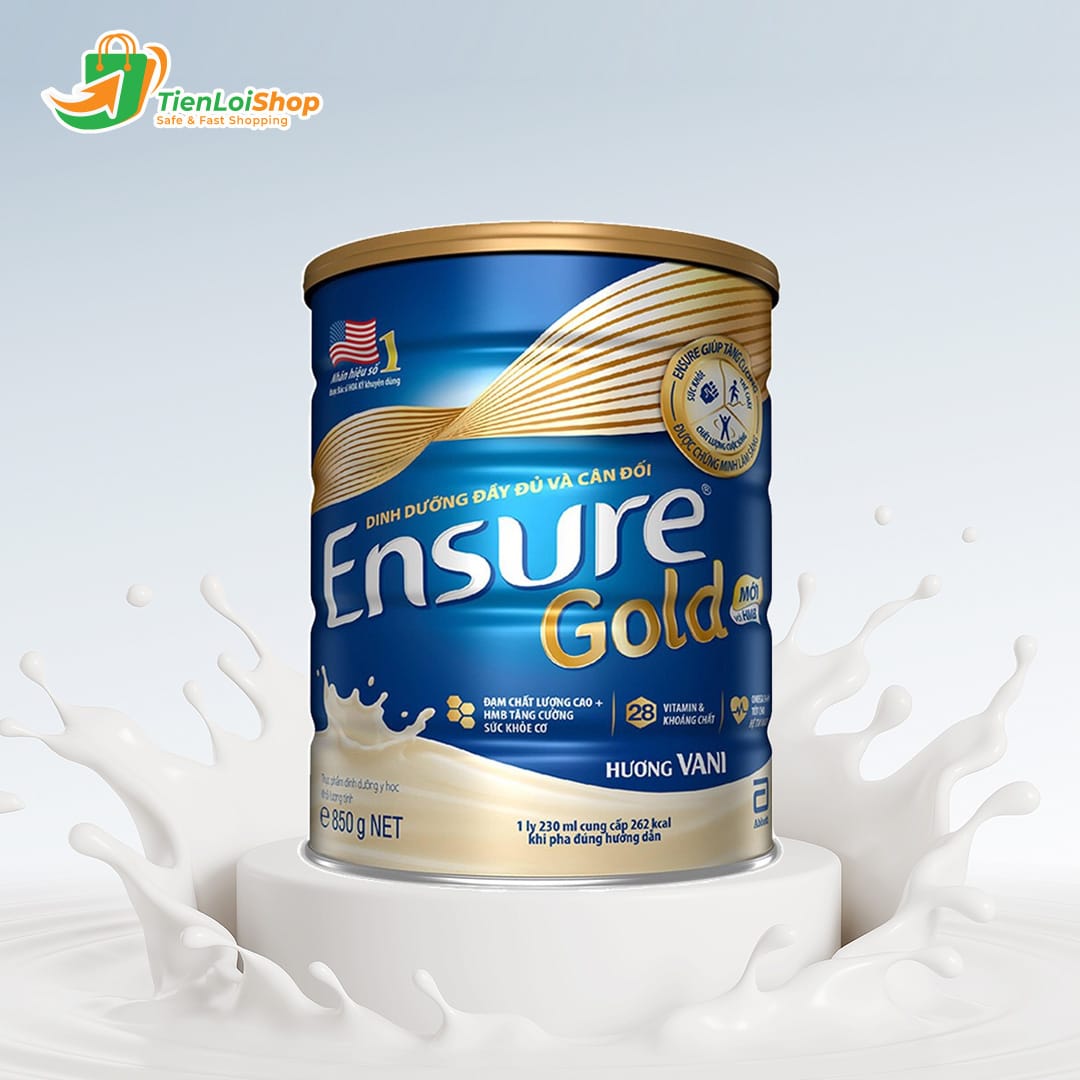 Sữa Bột Abbott Ensure Gold 850g Việt Nam Vị Vanilla gồm đạm, Vitamin (A, C, D3, E, K1, B1, B2, B6, B12,…), các khoáng chất (sắt, kẽm, natri, canxi, i-ốt,…): Sữa bột Ensure Gold cung cấp dinh dưỡng đầy đủ và cân đối cho cơ thể.
