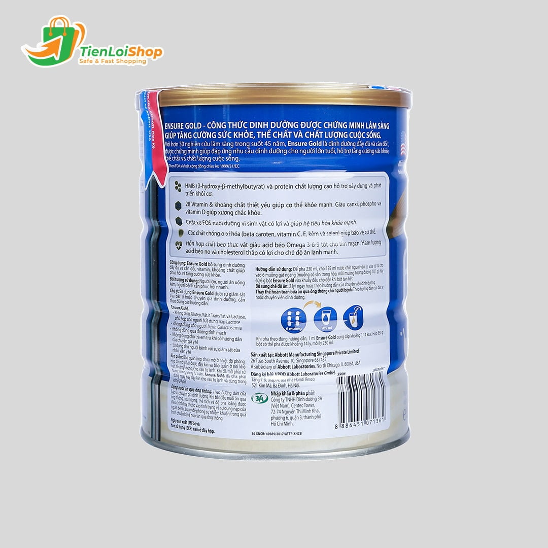Thành phần dinh dưỡng trong Sữa Bột Abbott Ensure Gold 850g Việt Nam Vị Vanilla